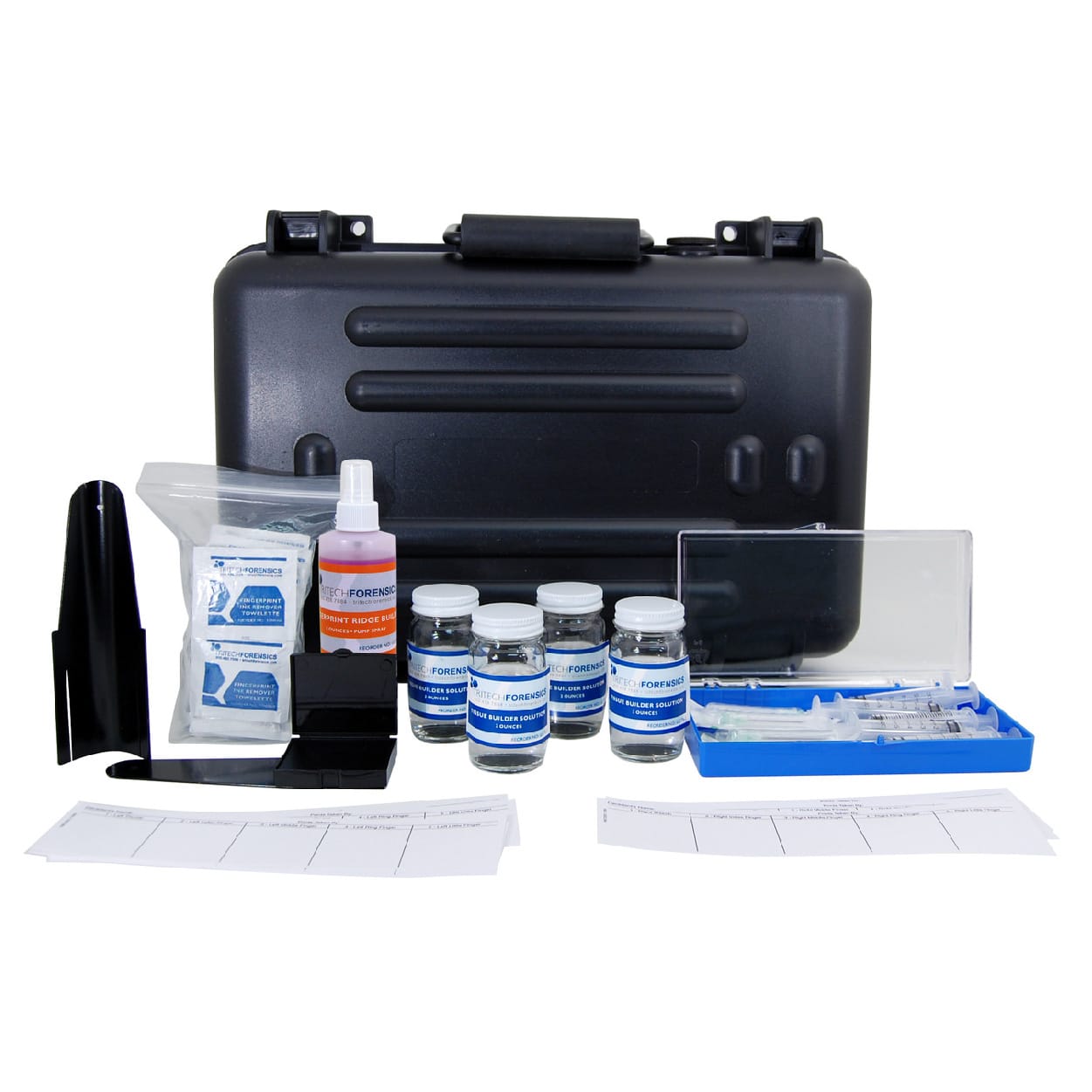 Master 屍檢指紋採集套件 提供 所有必要工具,用於 採集死者指紋,並包含 修復塌陷指尖組織的解決方案。