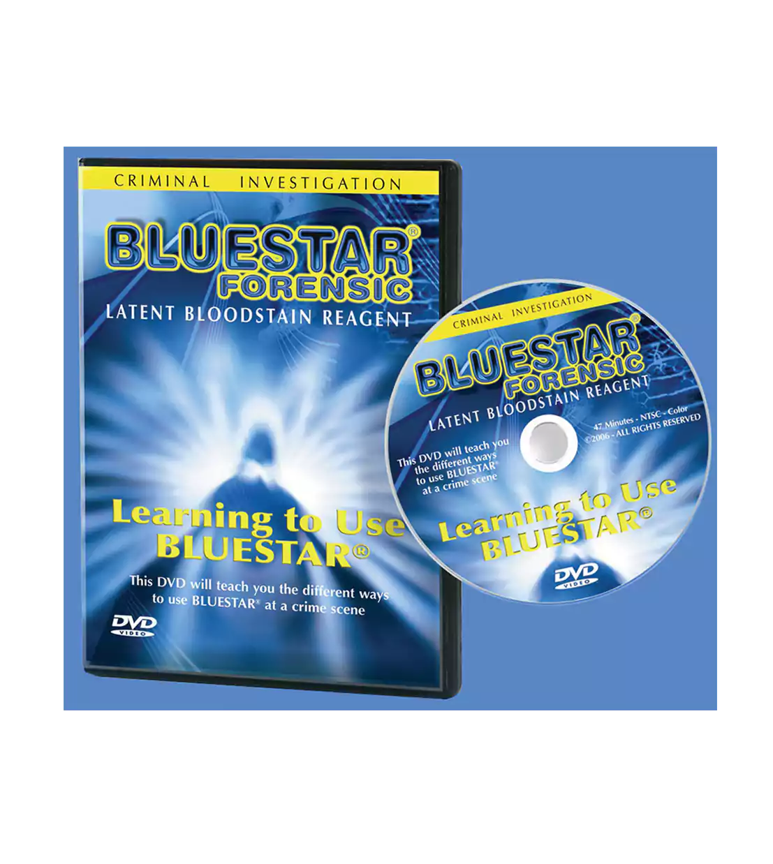 Bluestar 訓練DVD 用於訓練人員使用這款工具來定位血跡。這部47分鐘的 DVD 詳細說明了從頭到尾在犯罪現場使用 Bluestar 的過程。每個章節都可以單獨觀看。