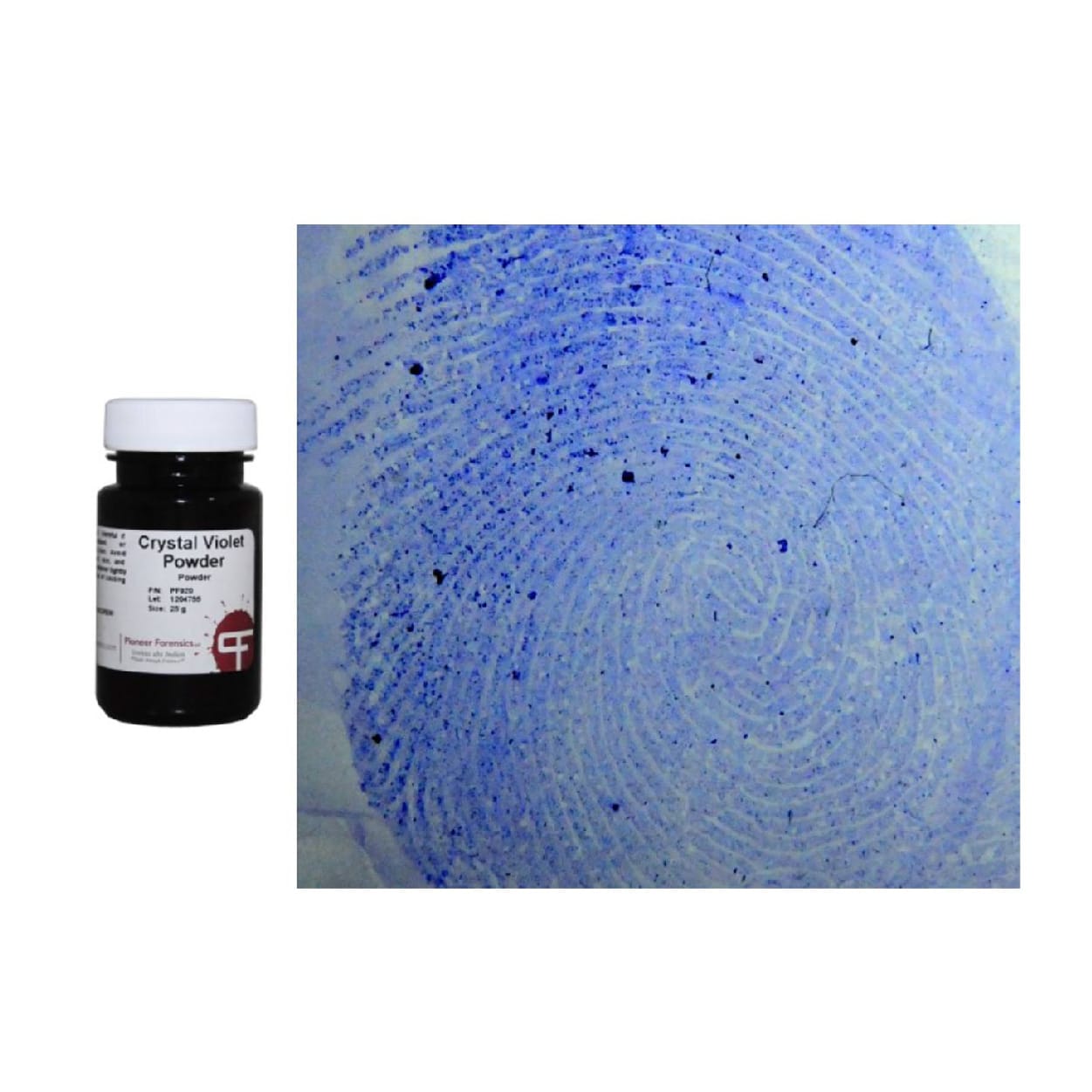 此化學試劑 適用於顯現膠帶黏著面上的潛在指紋。每個小瓶內含 預先測量的結晶紫濃縮粉末,可 加入 1 公升水 調製成 可用溶液。此外,我們亦提供 即用型預混液,可直接使用。