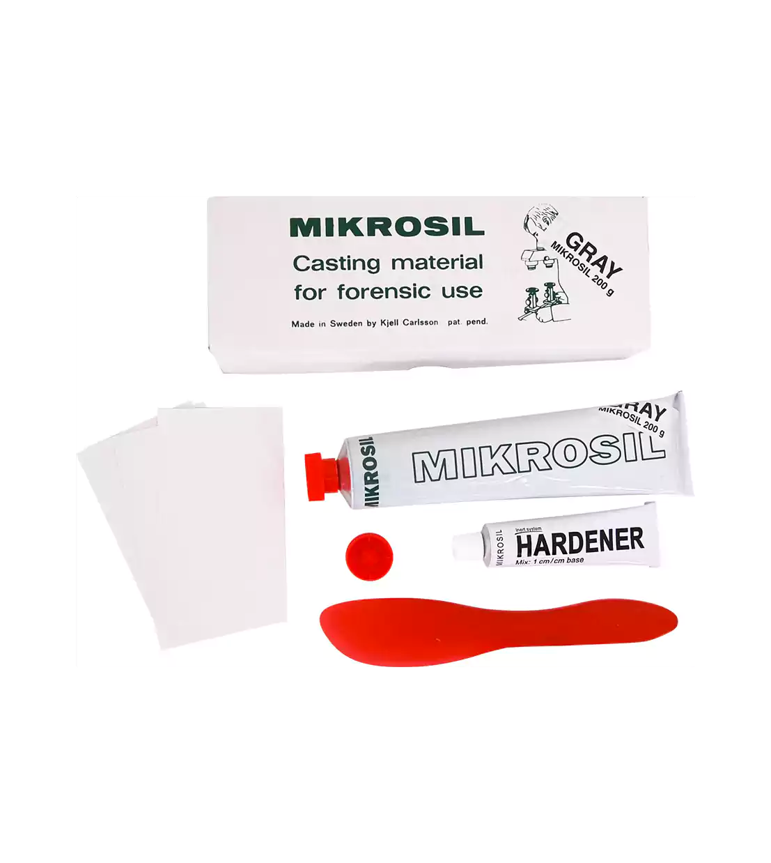 Mikrosil® 鑄模膏套件在需要製作高細節的工具和撬痕印模,或是從粗糙或圓形表面提取塵跡潛在指紋時使用。